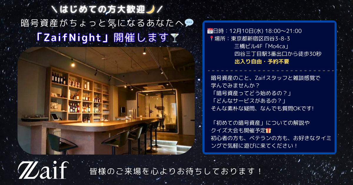 【リアルイベント】はじめての方も気軽に参加できる「ZaifNight」開催します(無料・初心者歓迎)